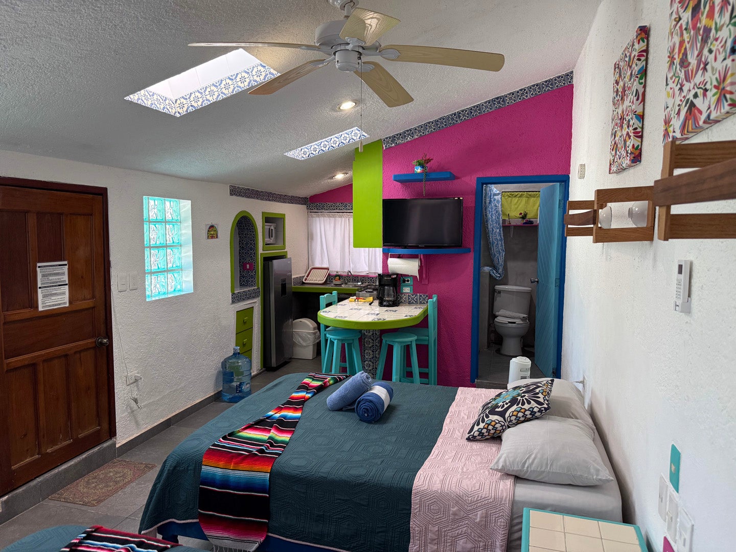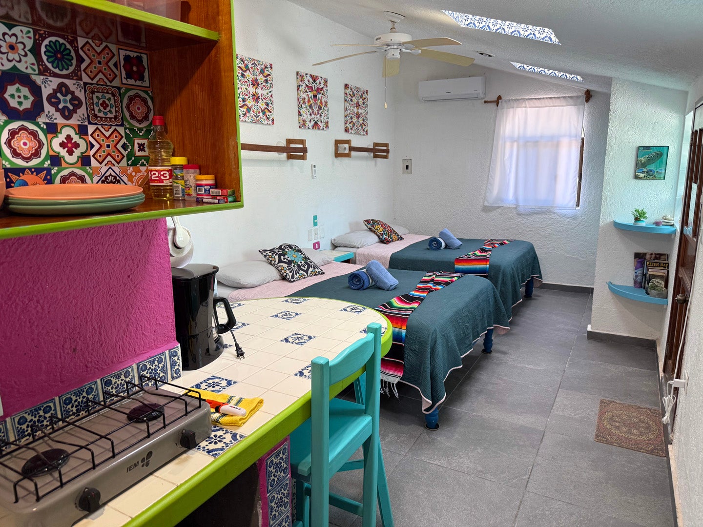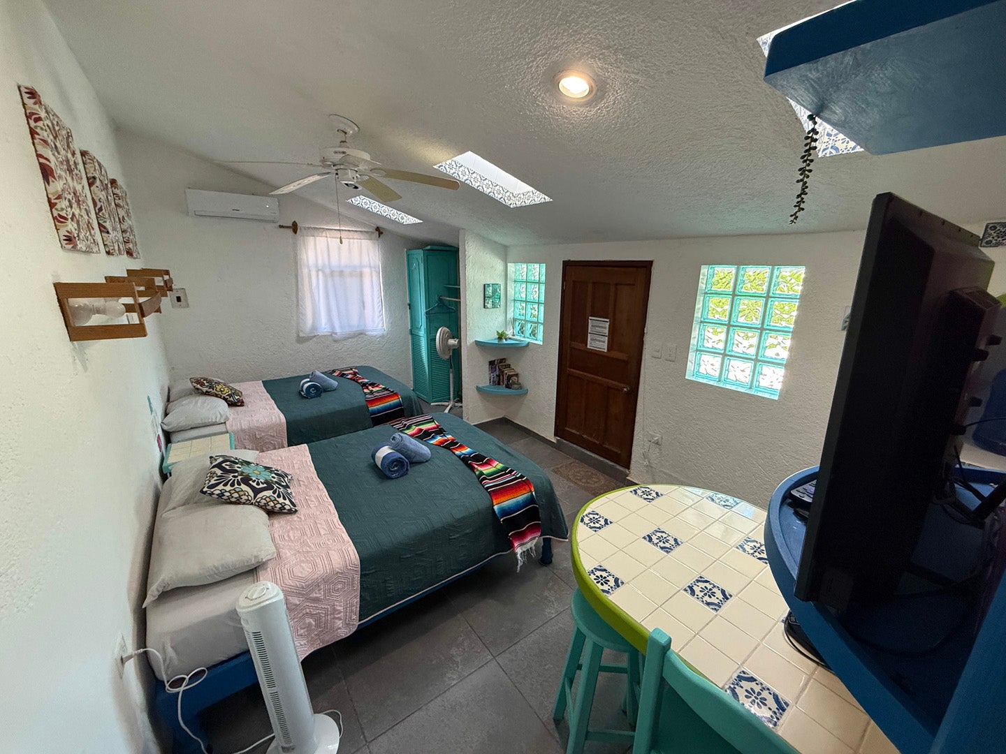 Luna Azul Casita Norte is a comfortable and cozy studio condo (the floor was recently renovated) with a full bath (also recentley renovated) and kitchen. It has two queen beds, A/C, ceiling fan, satellite television and wireless internet.