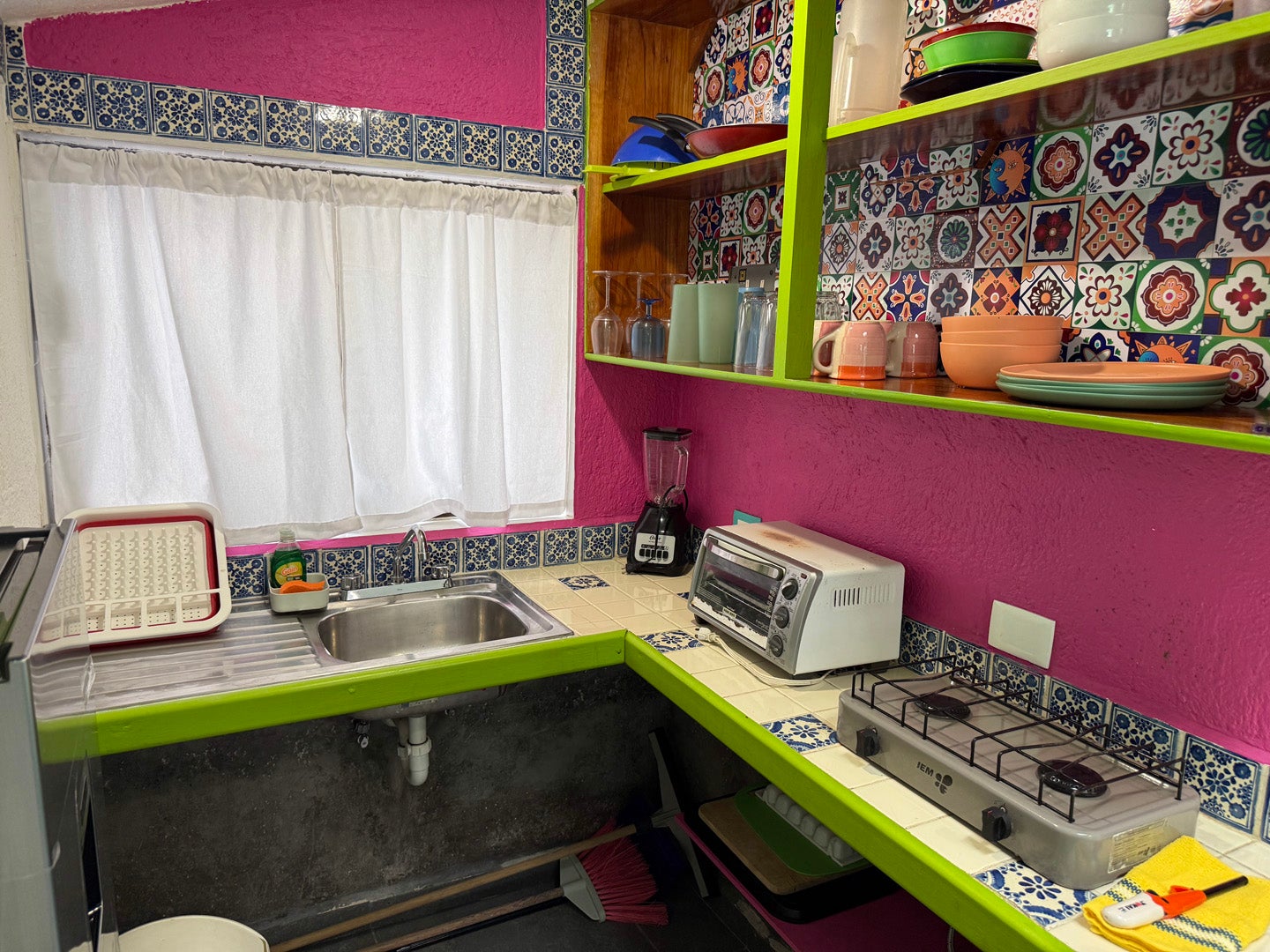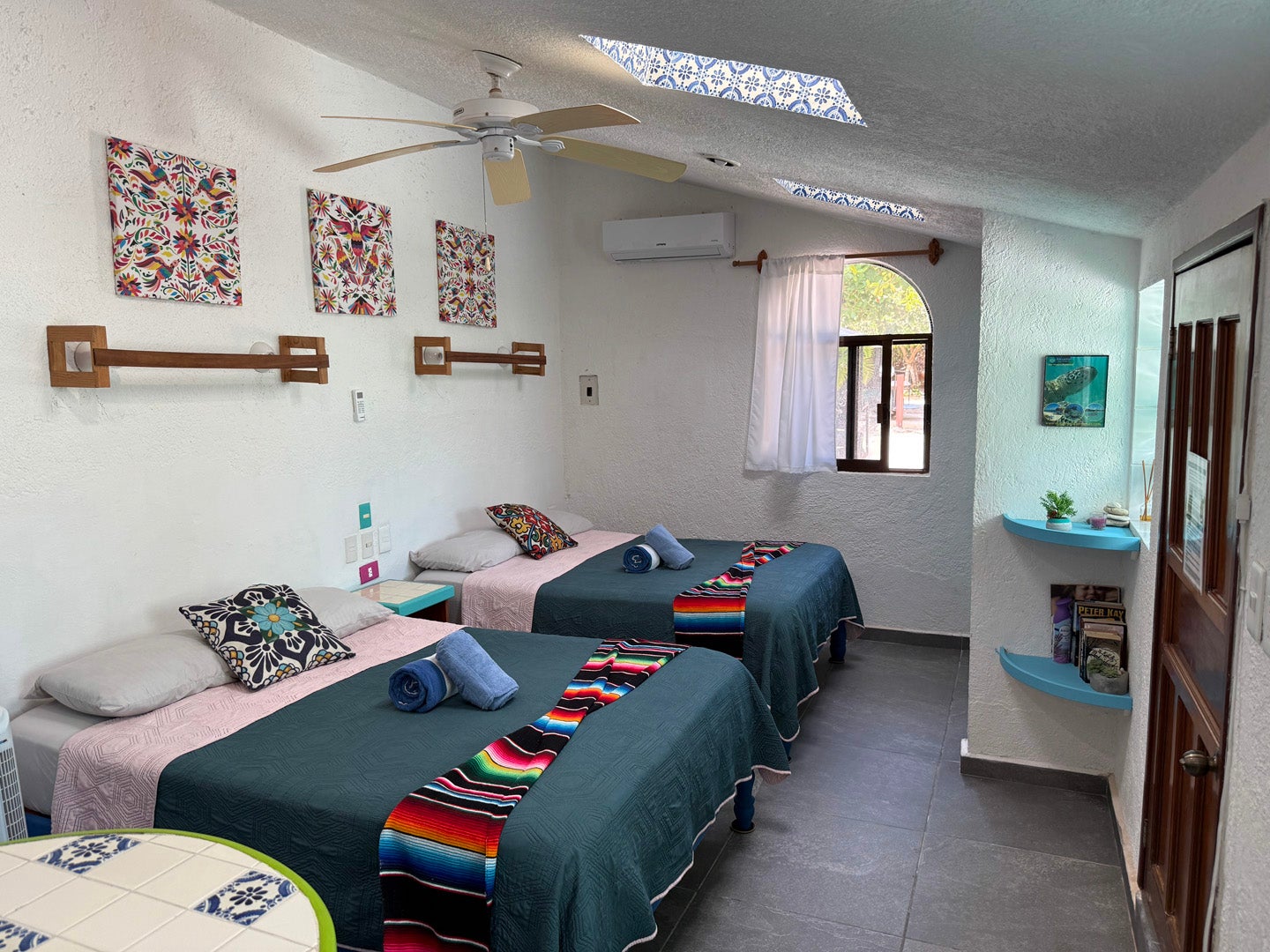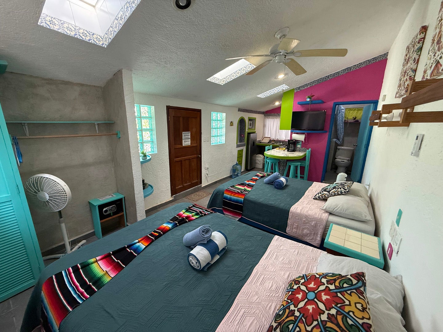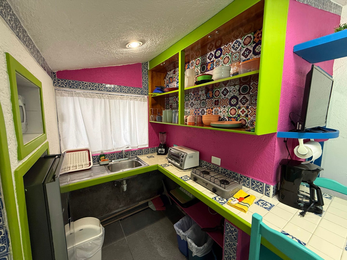 Luna Azul Casita Norte is a comfortable and cozy studio condo (the floor was recently renovated) with a full bath (also recentley renovated) and kitchen. It has two queen beds, A/C, ceiling fan, satellite television and wireless internet.