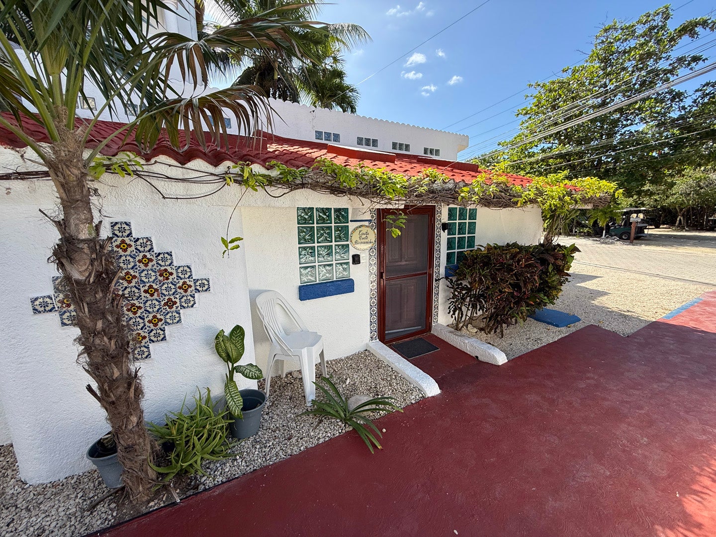 The casita is on the jungle side of the beachfront condo building and only a few steps to the beach.