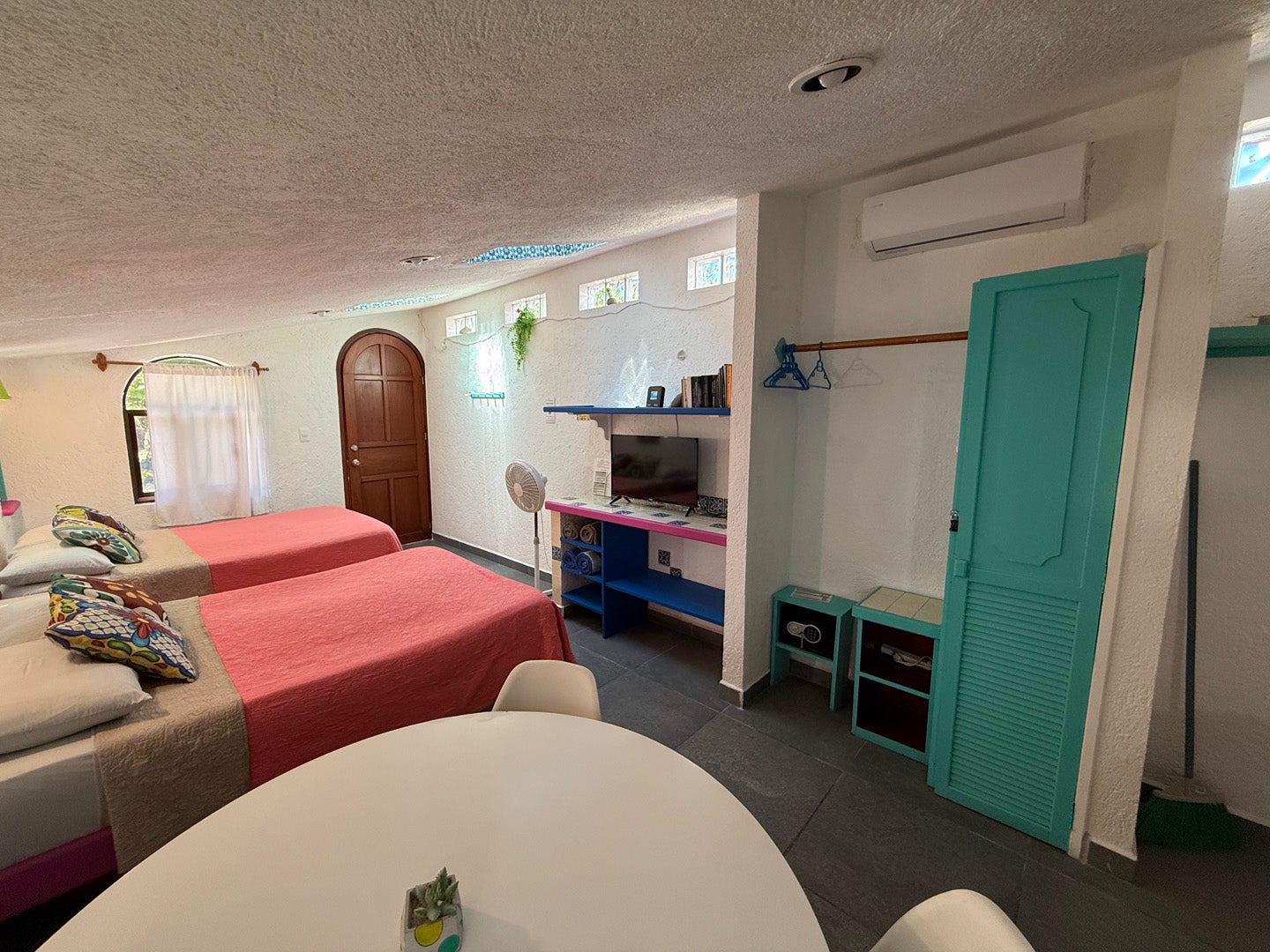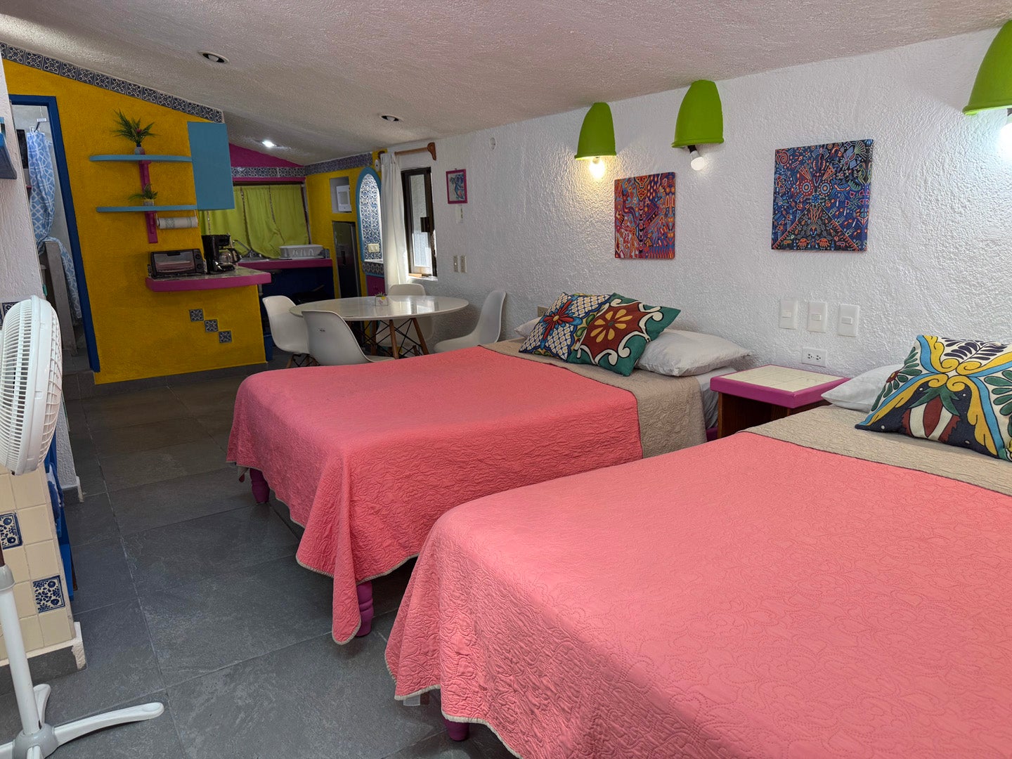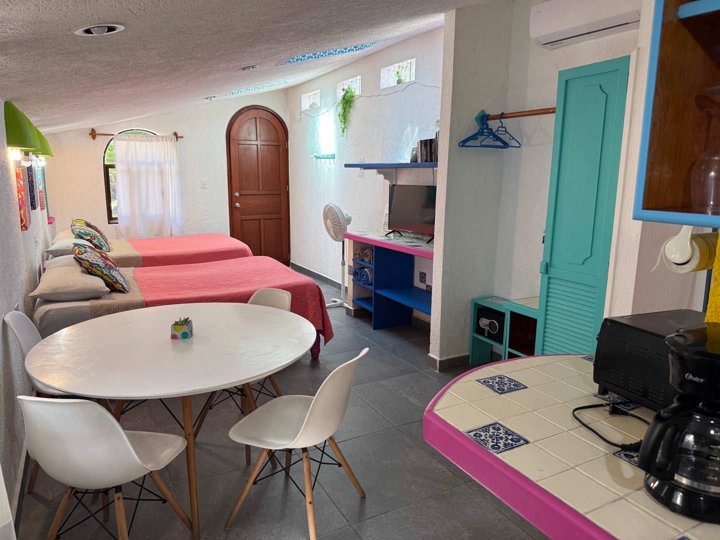 Luna Azul Casita Norte is a comfortable and cozy studio condo with a full bath (recently renovated) and kitchen. It has two Queen beds, A/C, ceiling fan, streamed television and wireless internet.