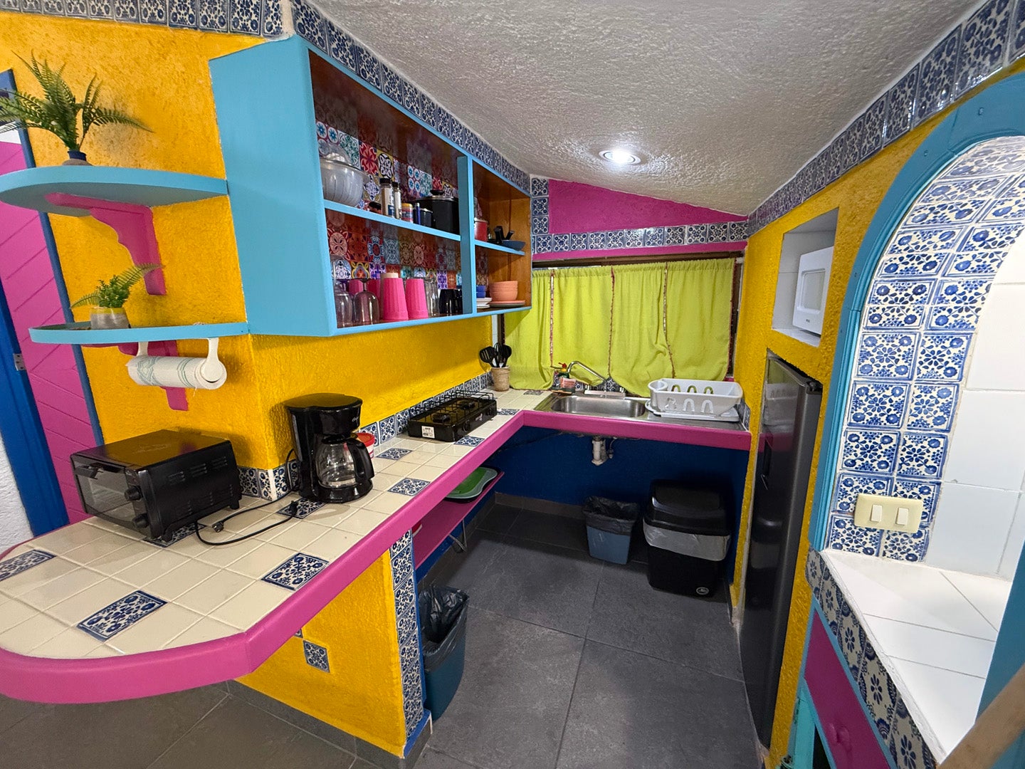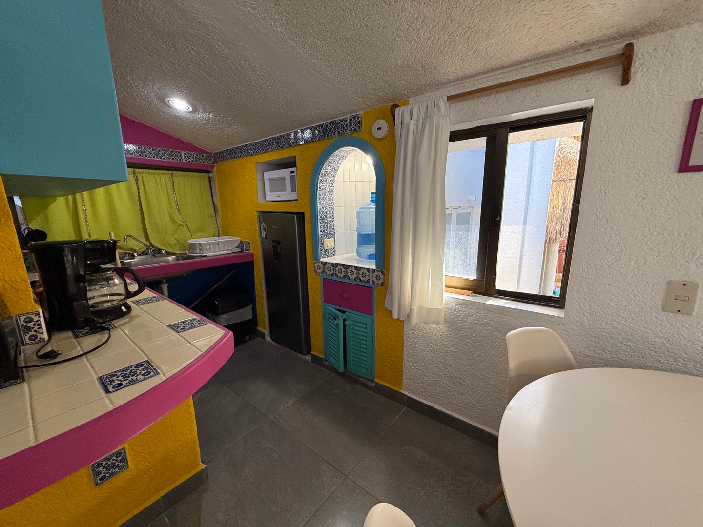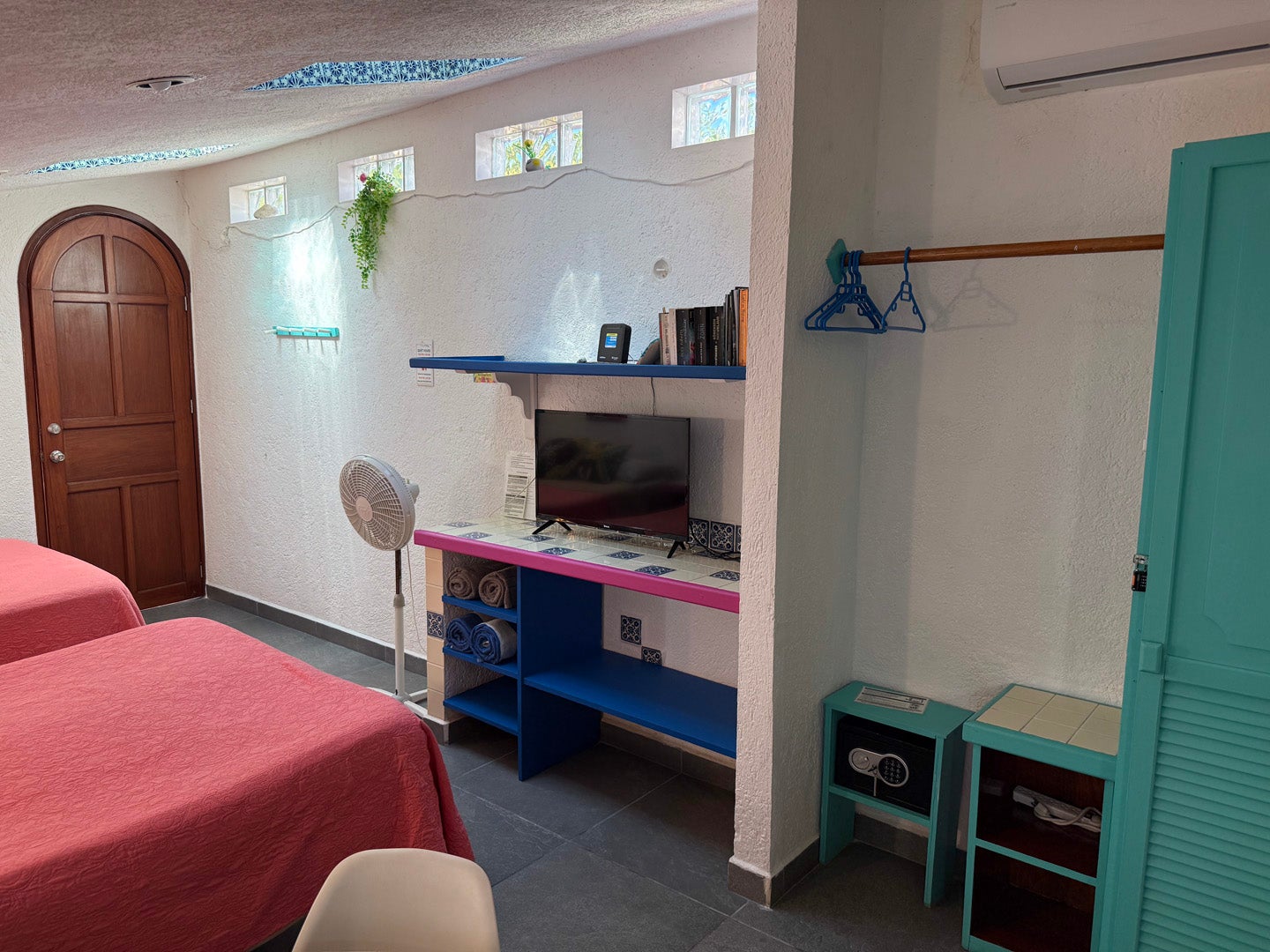Luna Azul Casita Norte is a comfortable and cozy studio condo with a full bath (recently renovated) and kitchen. It has two Queen beds, A/C, ceiling fan, streamed television and wireless internet.