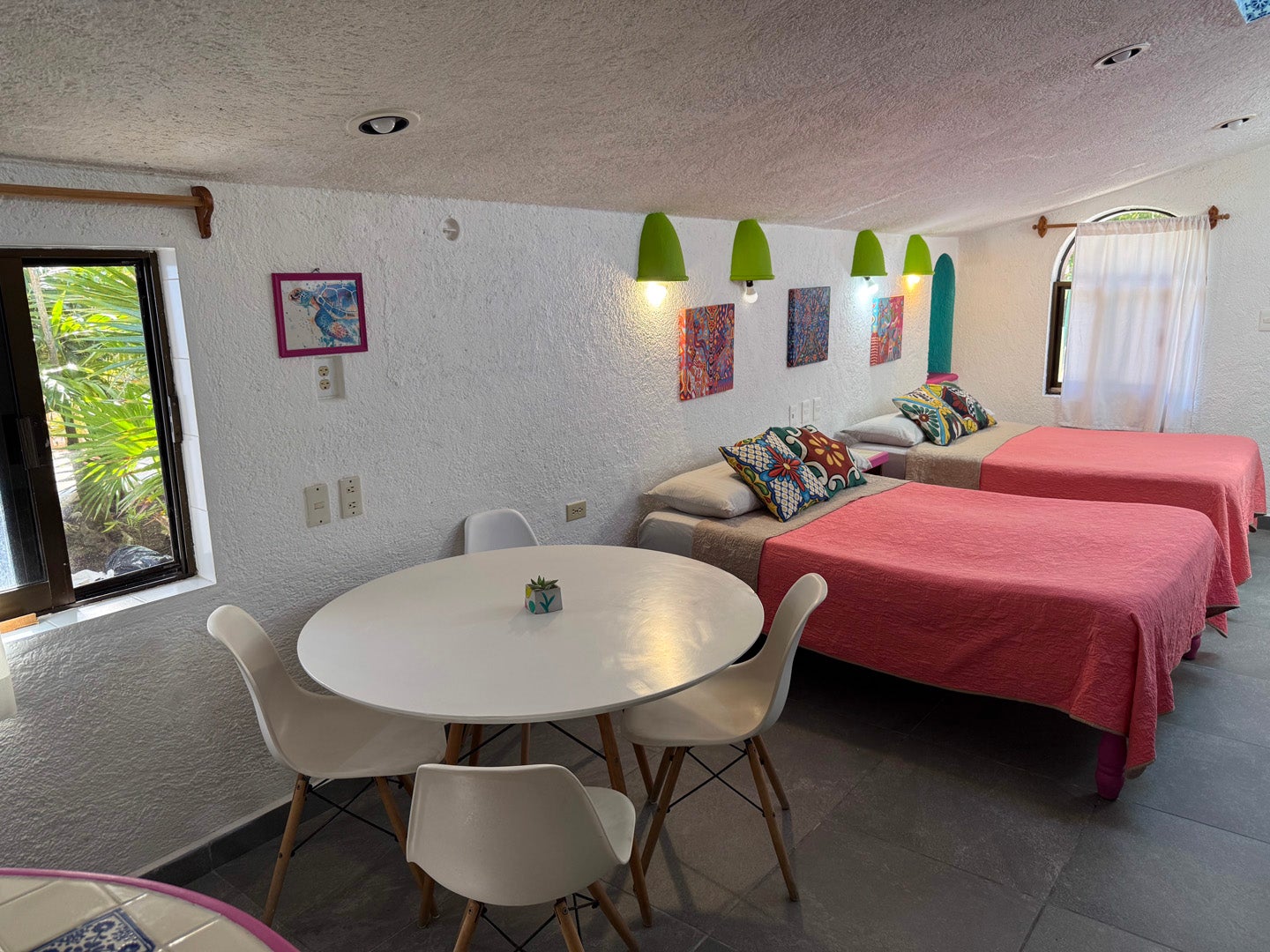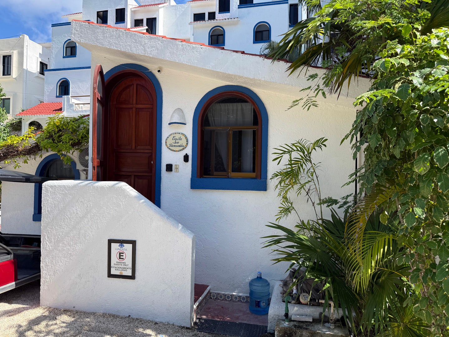 The casita is on the jungle side of the beachfront condo building and only a few steps to the beach.