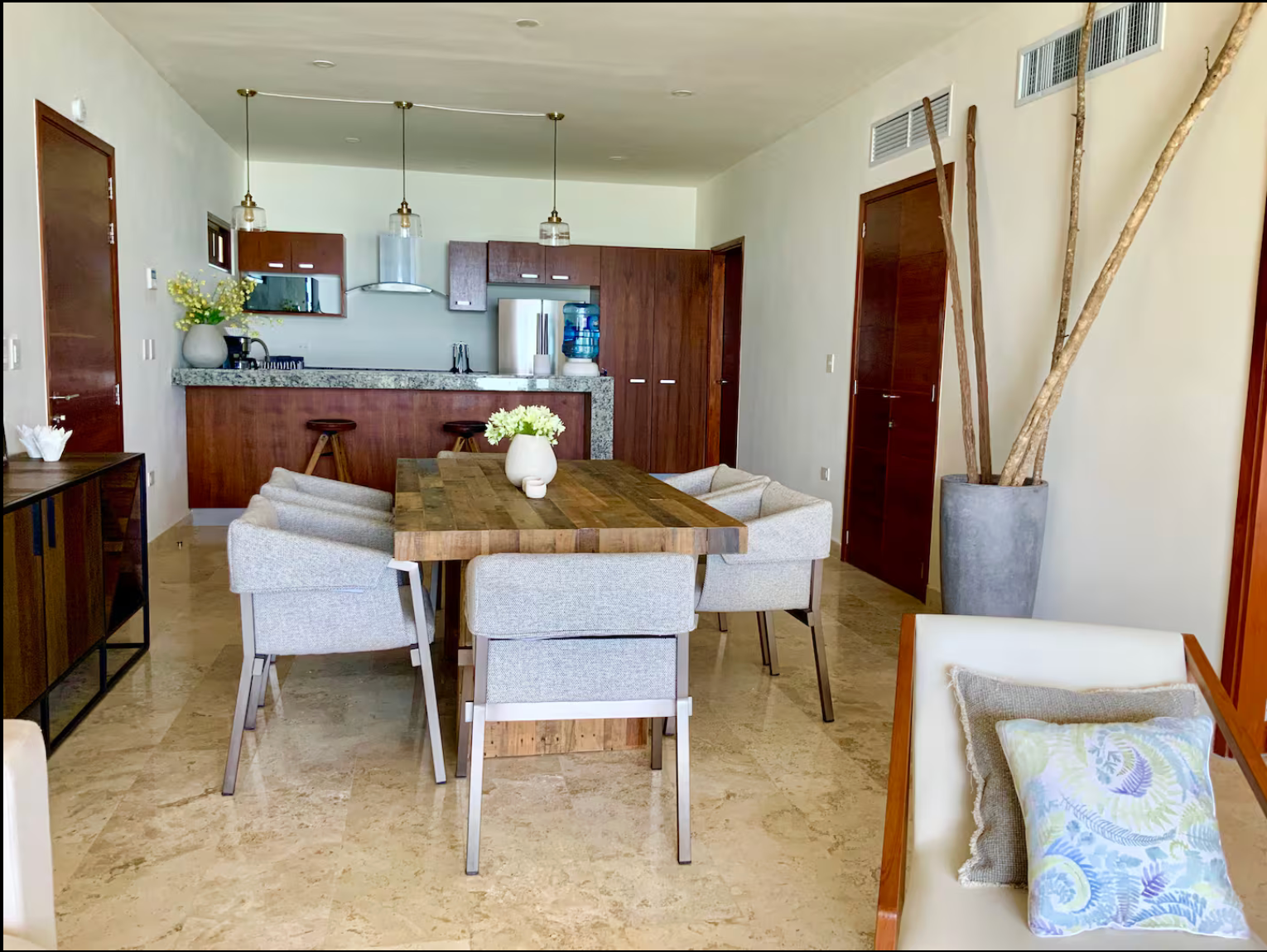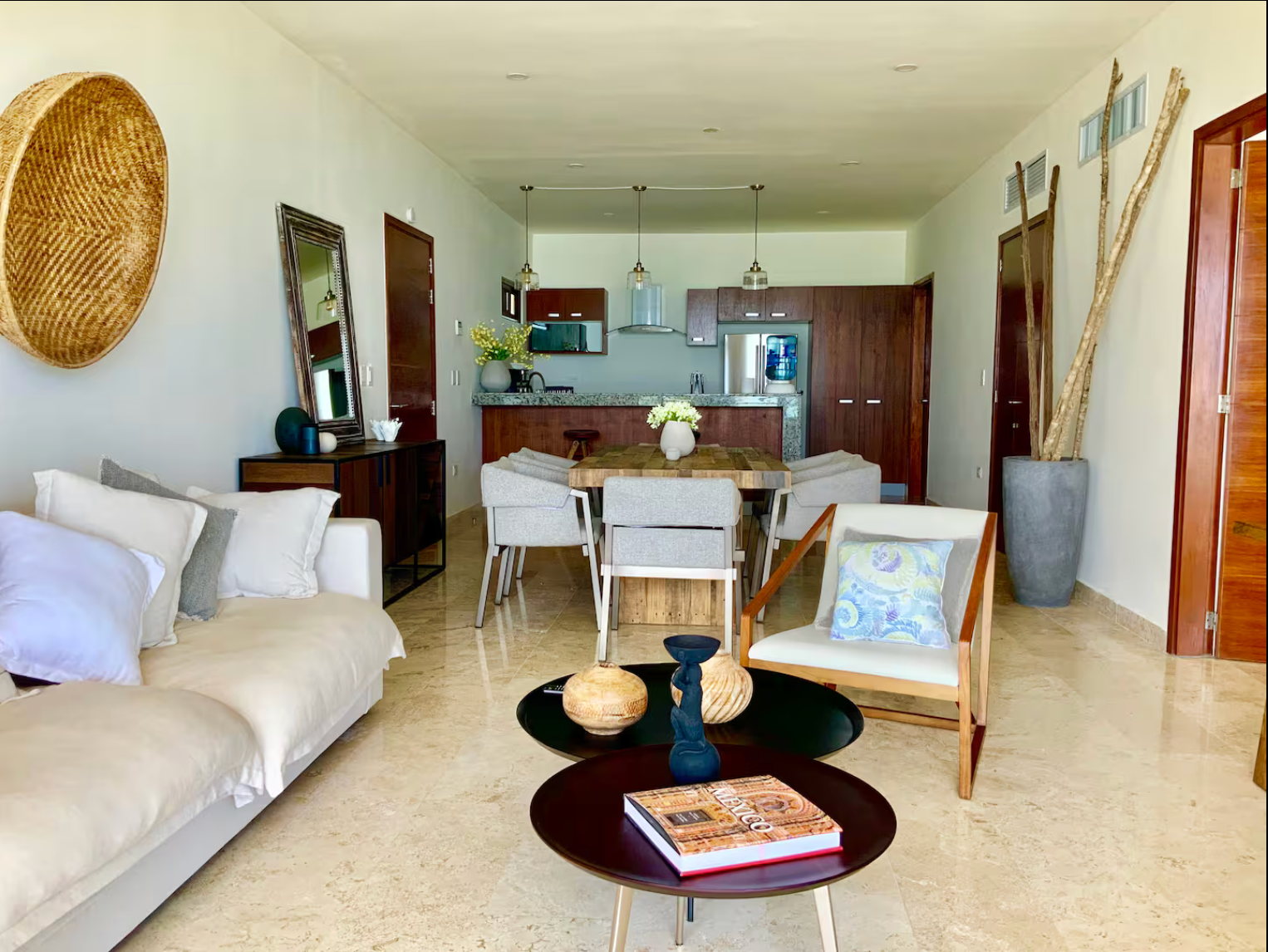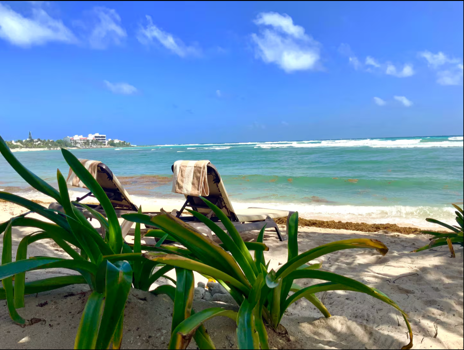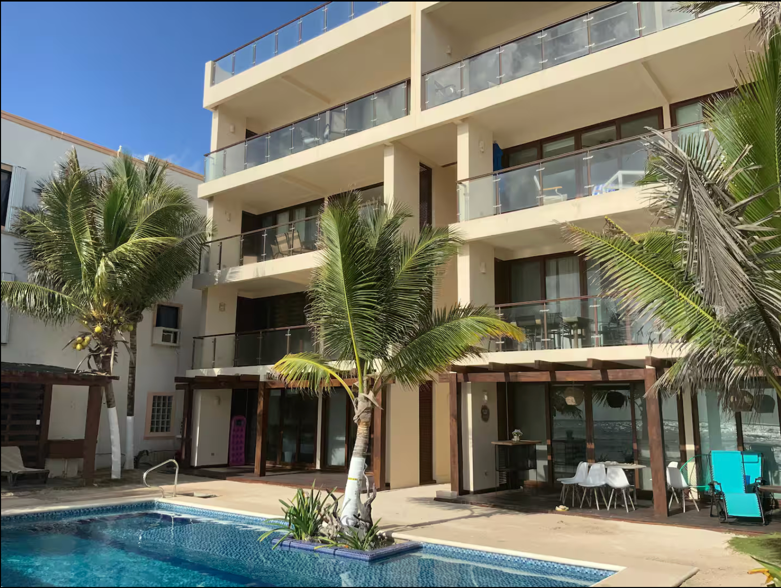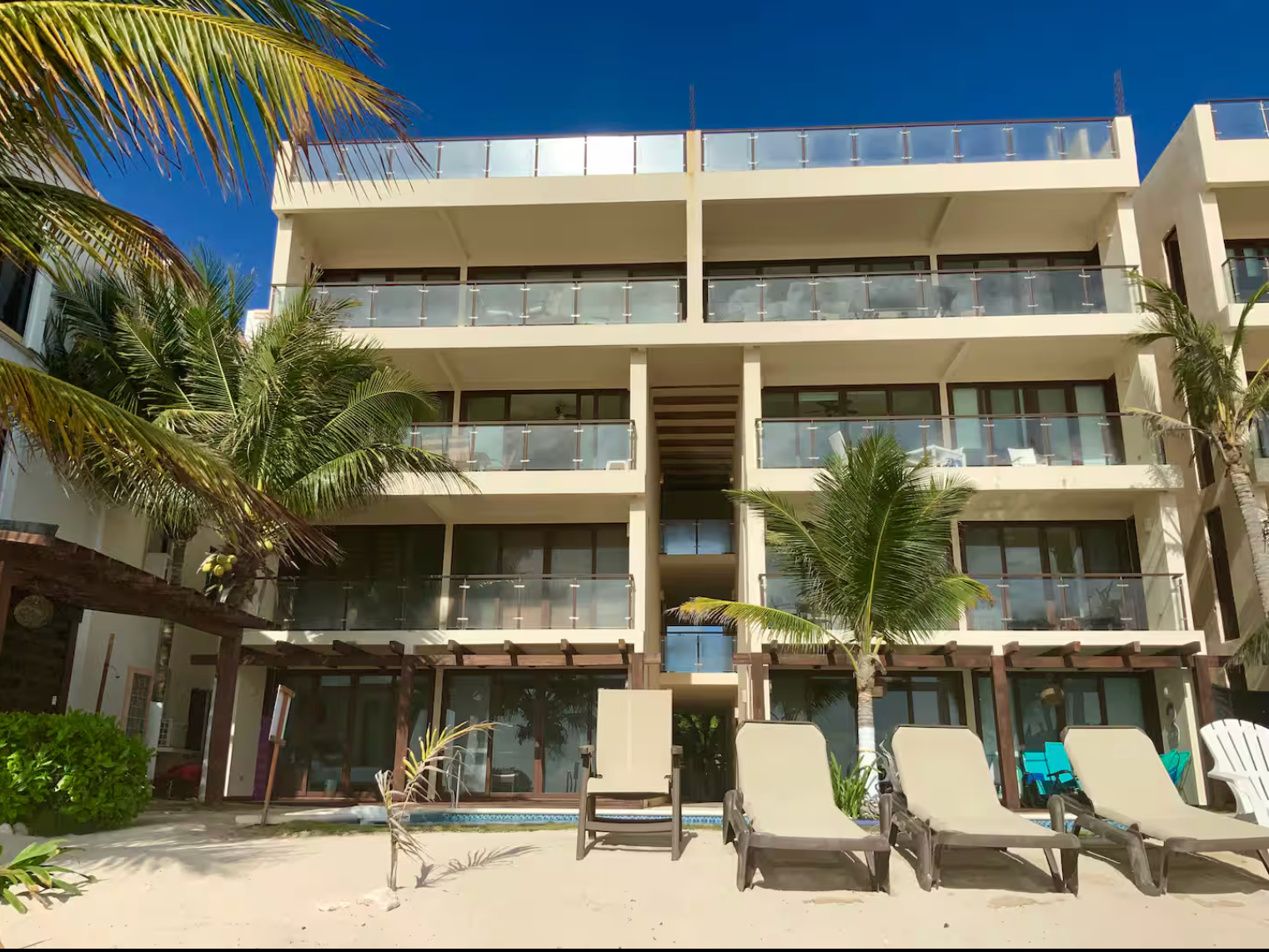 This luxury condominium complex with only eight condos and two studios is located in Half Moon Bay, one of the best locations in Akumal. It is a short walk to delicious local, beach restaurants including La Lunita and La Buena Vida.