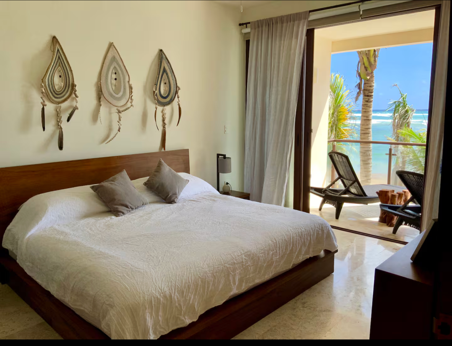 This Nikte Condo has unobstructed ocean views from the front veranda, contemporary design, and charming touches that encourage you to enjoy the Caribbean Sea and a rear balcony to view the lush green jungle. Or, take the elevator up to the rooftop to enjoy a sunrise or sunset view. All without sacrificing comfort or style.